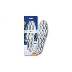 Cette semelle possède un côté 100% laine et des feuilles d’aluminium avec mousse isolante.